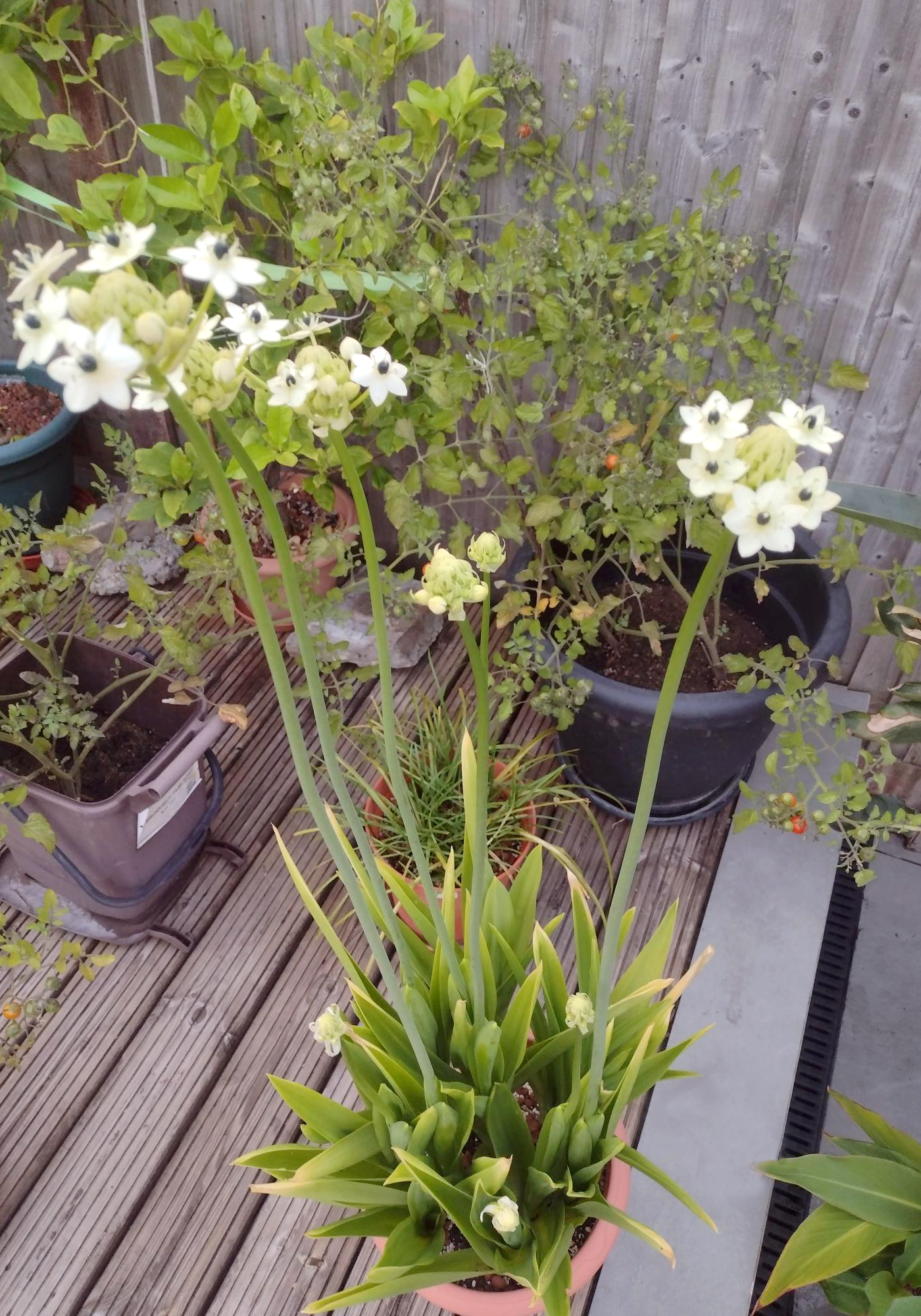 As Debby told us “We have 3 ornithogalum flowers coming. These grow up to about 2 metres in height!” Here’s the link to what they looked like in September last year (here).