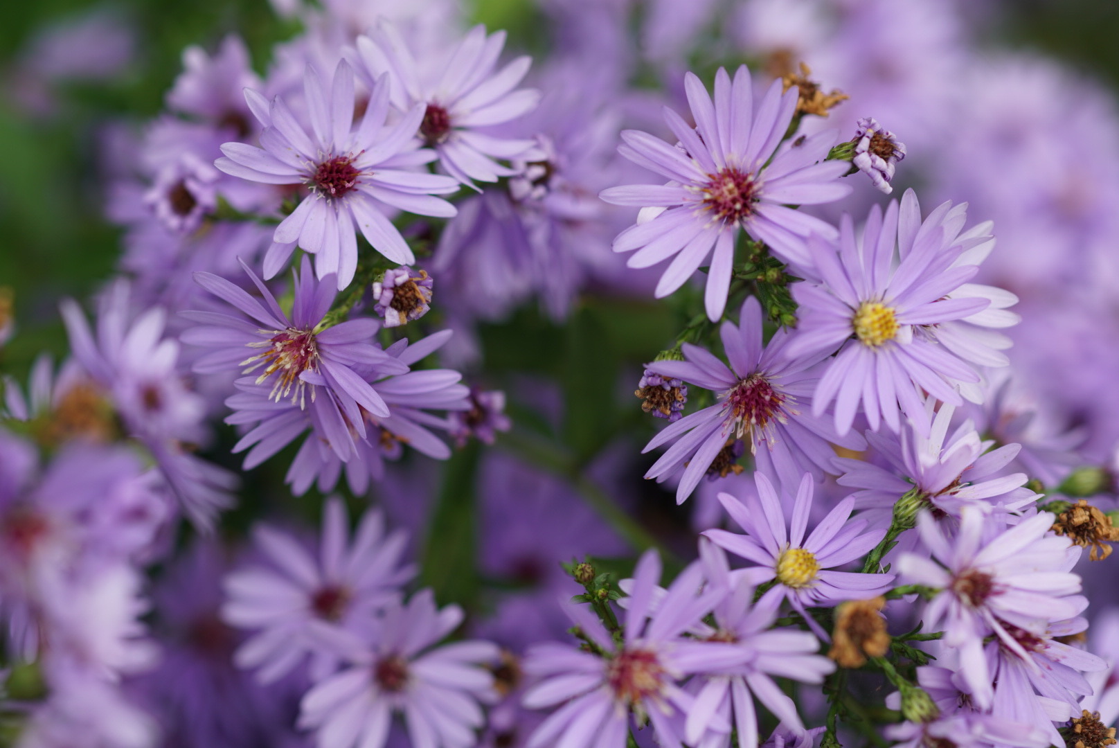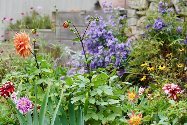 We also love what we think is an echeveria (below) as those angular flowers look great and also those asterflowers (lower below).