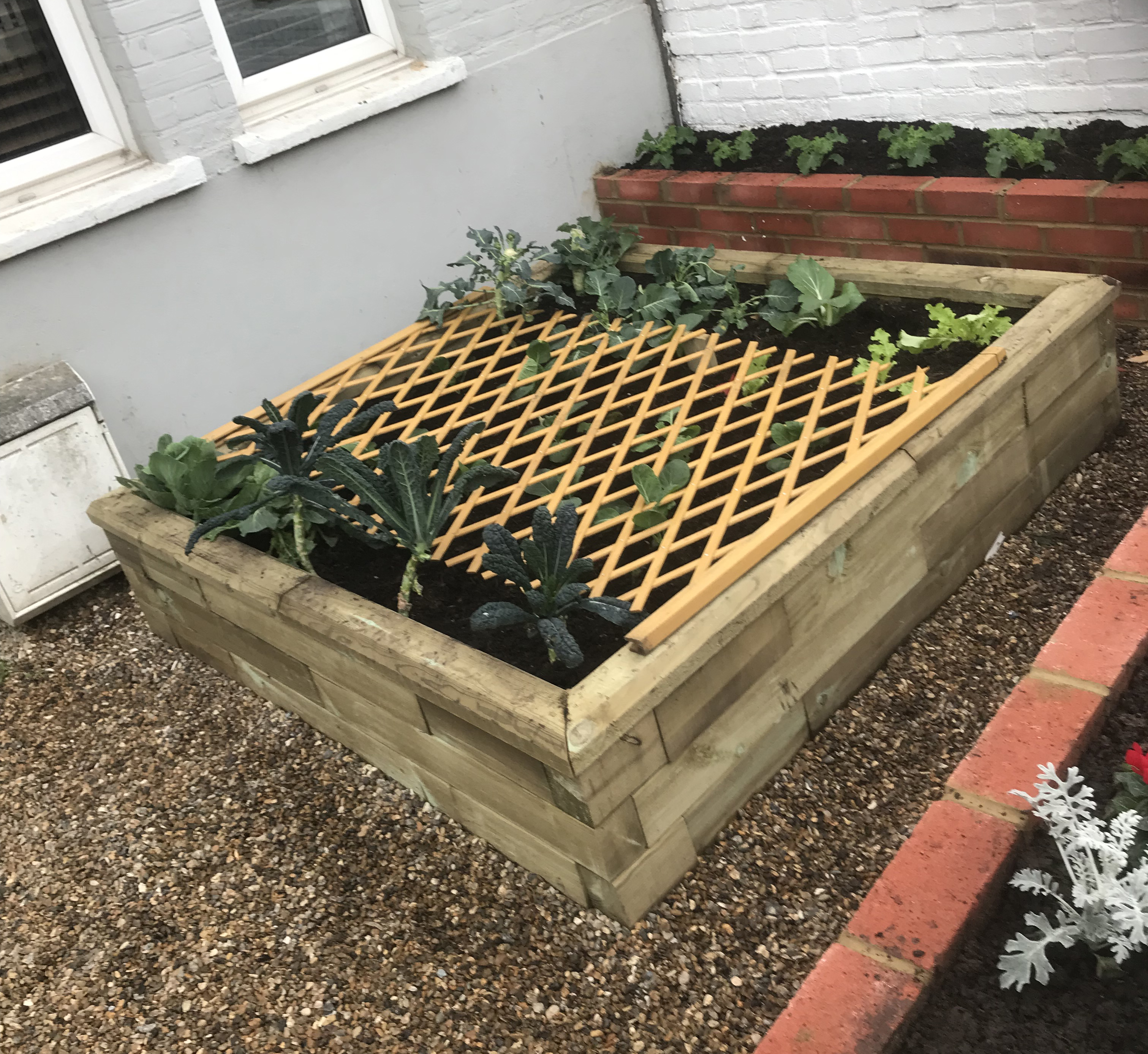 And a few doors down we saw a nice raised (vegetable) bed with some trellis used as a squirrel, pigeon and general pest deterrent, what a clever idea.