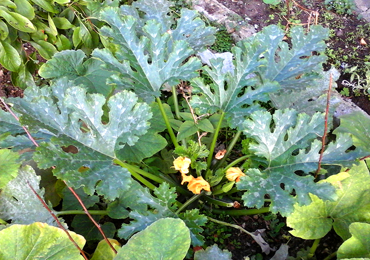 Big thanks to our good friend across the pond Justin Patrick Moore for sending us this picture of a volunteer (plants that self seed) zuchinni (aka courgette) that has come up on the compost heap. They thrive in rich soil so a compost heap is ideal. To say the plant is going mad is an understatement!