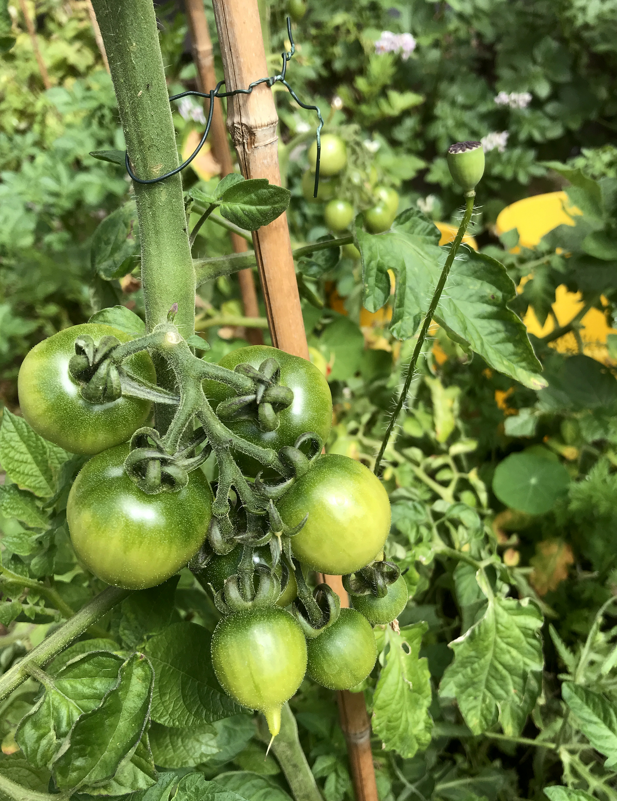 And the vegetable bed we were supposed to be resting (and originally where the beneficial flower seeds were going to go) and then due to the lockdown and the local shops having a 3 potato per person rule we put in a couple of rows of spuds, then onions, then broad beans and now it’s mainly nasturtiums swamping said spud plants near those tall cardoons. Next year, we swear we’ll rest the bed!