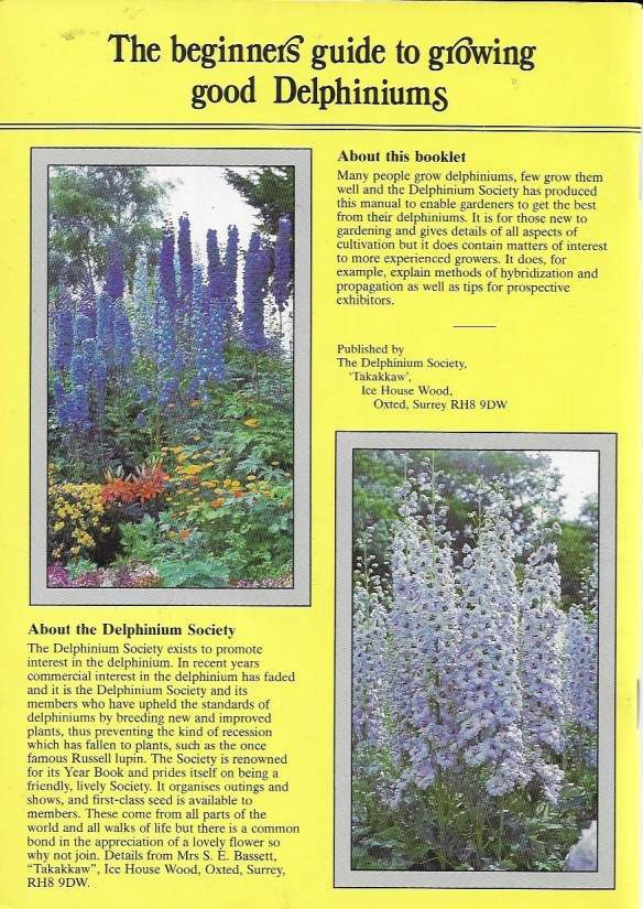 Found last night amongst a pile of books on a garden wall with a “please take” note beside them was this one called “Delphiniums for All” published by
