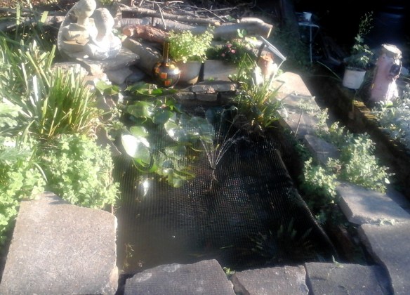 Today we gave it one more chance and laid the solar panel directly in the sun for a few hours and the thing shot back into life later in the afternoon. The battery was as flat as a pancake. Salute to solar power! By the way the goldfish bought from Lewisham’s “premier” pet shop are still there but went a bit camera shy when this photo was taken (don’t worry that pesky Heron hasn’t had them!)