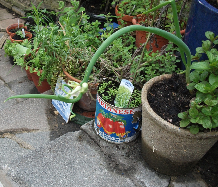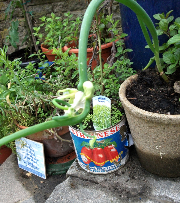 Spring has well sprung and today it’s looks like it’s sprung a blimmin’ leak as it was tipping it down most of the day here. The Egyptian Walking Onions are starting to form topsets, boy what a mad plant that is! Mine was originally obtained from Shannon’s a year or so ago and the plant below is off one of the top-sets which I didn’t give away.
