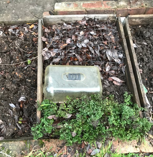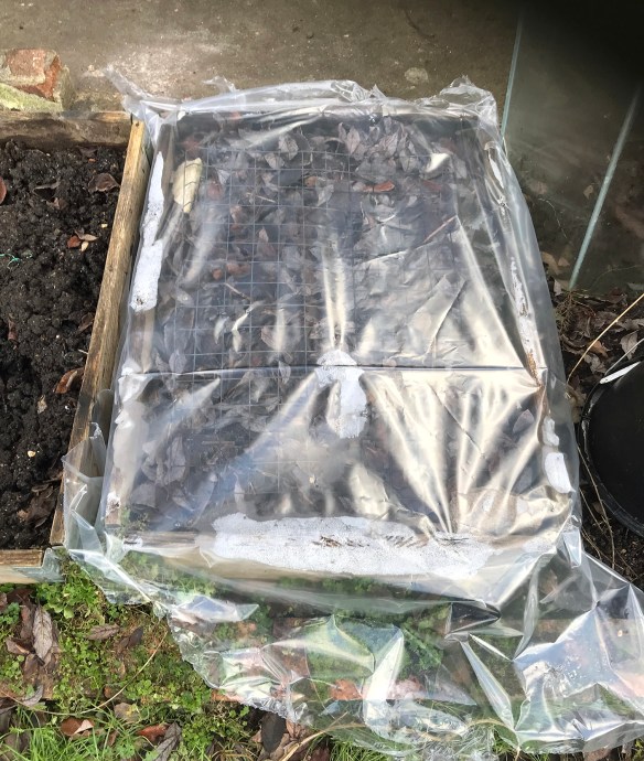 Hardly cutting edge and it didn’t take ten minutes to do but some plant protection all the same using some polythene and some tacks over the cold frame. God knows if the Elephant Garlic has survived the last few days of frosts and freezing conditions but we are trying or have we