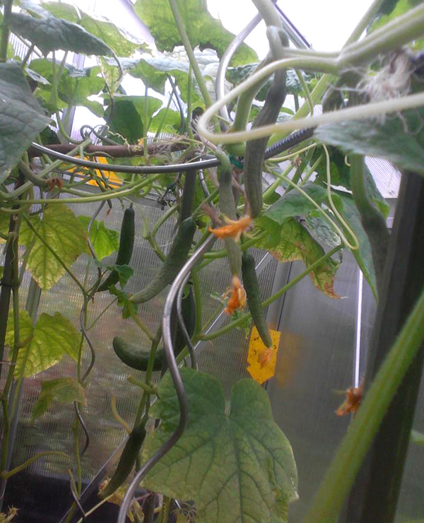 He also tries to grow something interesting like melons or special tomato or chili strains because of his limited space and he tells me that this years cucumber-harvest was amazing! I’ve only tried growing them outdoors twice and haven’t had much success but these below in his greenhouse look brilliant!