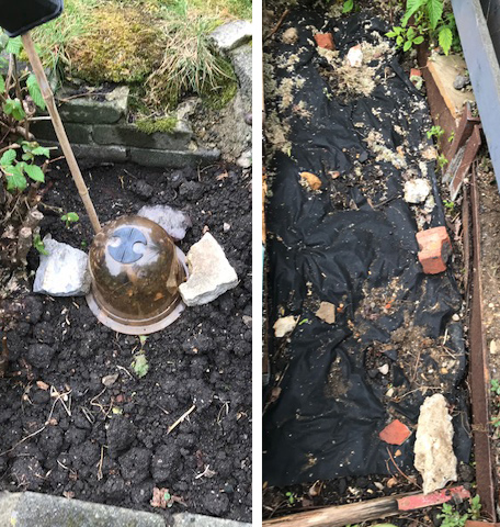 We’re taking no chances here as don’t want to lose any plants overnight even though they have been hardened off over the last few weeks. We’ve put three tomato plants out and some sweet peas but we’re still covering them at night with some improvised protection from bubble wrap, jam jars and the terrarium we found years ago that is now a bit cracked at the side and missing its glass top and now has some polythene on the top. Who cares what the frost protection looks like as long as it’s doing its job! More sunny weather please.