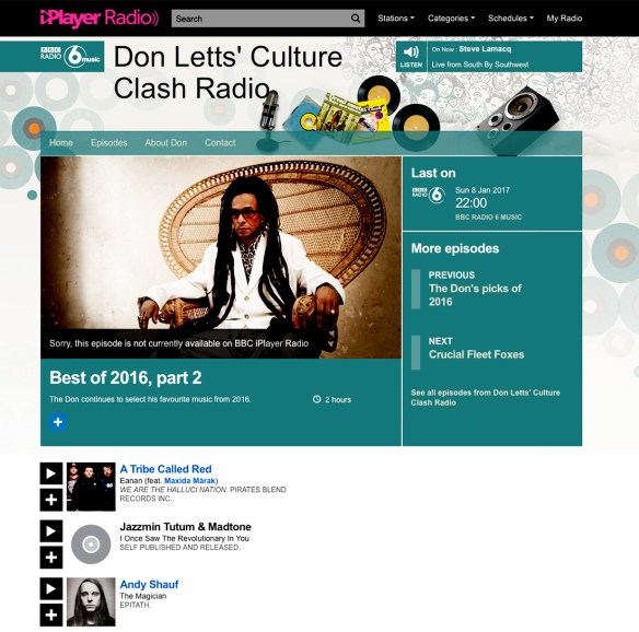 A massive thanks to the DJ and dread gardener Don Letts for playing Jazzmin Tutum & (Weeds up to me knees’ very own) Madtone’s –I once saw the revolutionary in you as part of his “Best of 2016” special in January on BBC Radio 6. The show features Damian Marley, C Duncan and The Frightnrs and a whole lot more! The Jazzmin & Madtone tune is at 1.02.42. Big thanks Don!