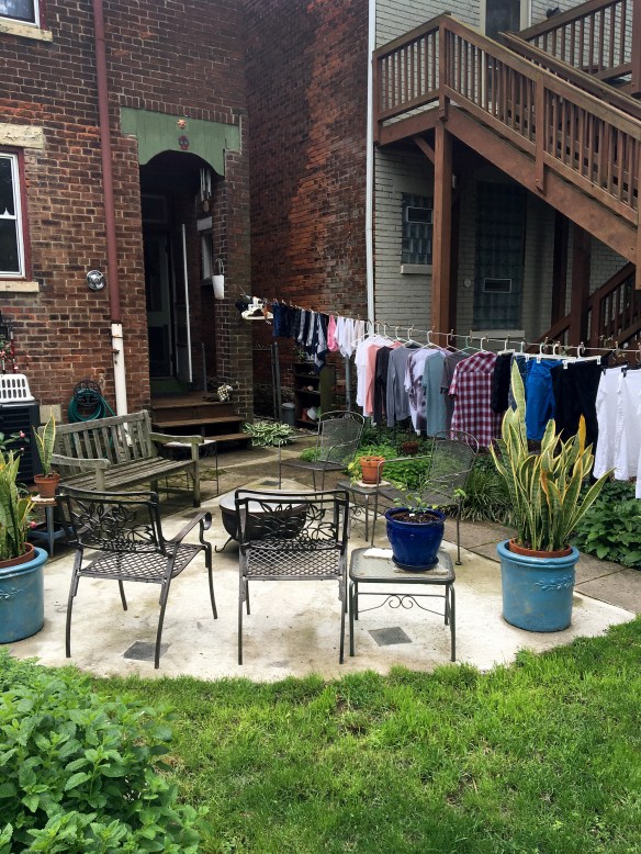 We moved the houseplants out and back inside three different times this past spring (below). Except the really big heavy ones I have to use a two-wheeler to get out, because really I’m only going to move those in the spring and the fall. I guess we really should have until the real last frost because they took a beating with repeated cold snaps, thunderstorms and then hot days. That’s Cincinnati weather for you. Wait a few minutes and it will change.