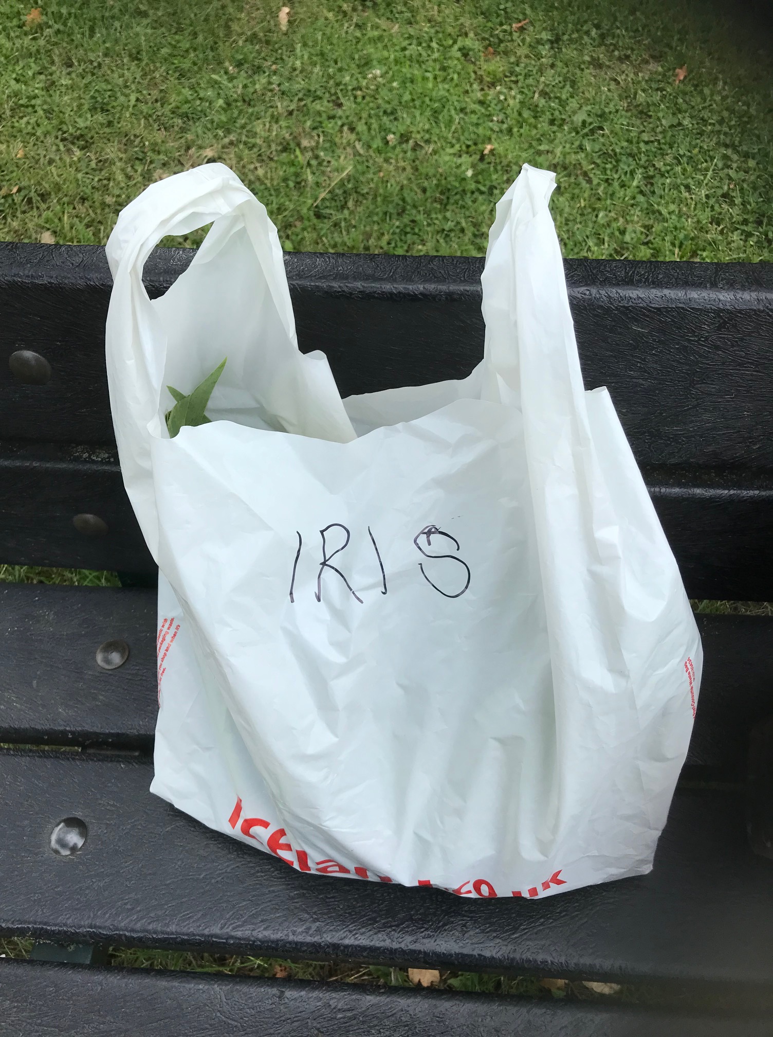 You can be lucky though, like we were the other day. On our daily excercise stroll we saw a few Iceland bags full of neatly pruned Irises with lovely cleaned roots that looked like they had been washed. Of course we took a bag, and why not?