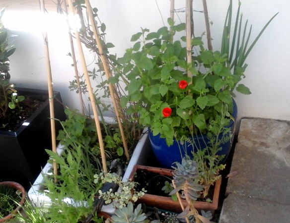 Night scented stock 1Here’s a favourite of mine, Night Scented Stock that is dotted all around the garden. The plant itself isn’t that impressive but the smell of the flower in the evening is great, especially if it’s near the back or front door. I sowed a load of the seed earlier this year in an old plastic Post Office container (found in the attic when we first moved in) and what’s good about that, is that it can be moved about for maximum effect.