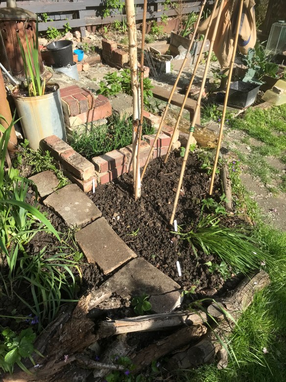 We’ve also put some metal netting/grid type things on the top of the surface to stop the pests. The most recent ones to the garden are the pigeons as we caught them red handed at the brussel sprouts tops earlier. And we thought it was the slugs! We really have to think about some netting as we wonder was it them at the cardoons as well?