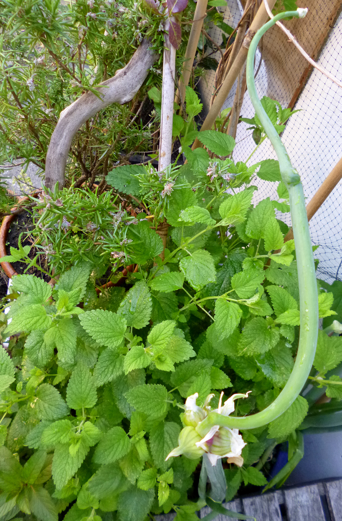 And the bonkers as anything Egyptian onions (below) are now starting to “top set”. More pictures to come of these strange onions.