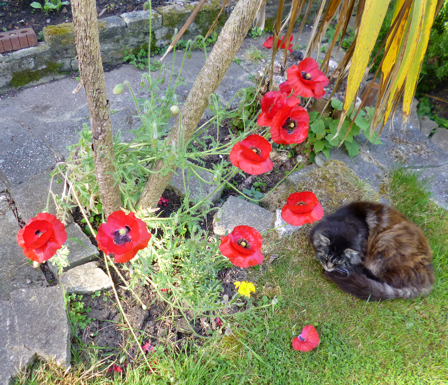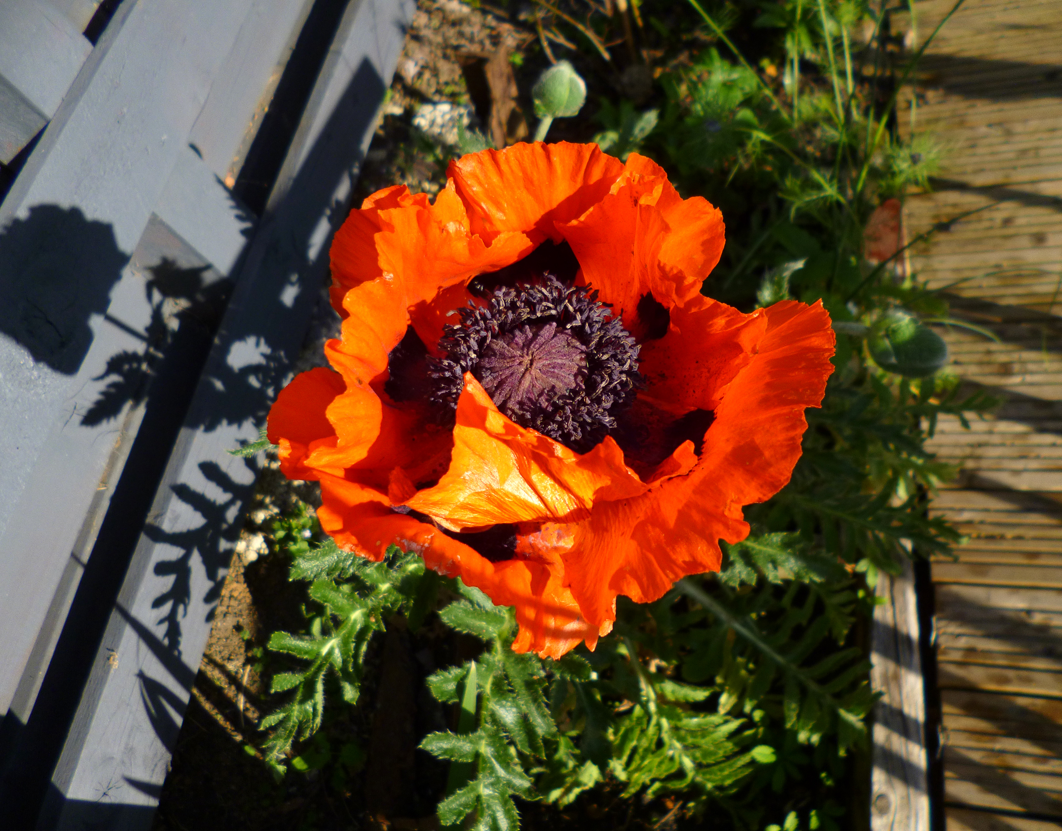 And in warmer times (at about 10am) the sight of the first poppies in the garden. As the song goes, what a difference a day makes.