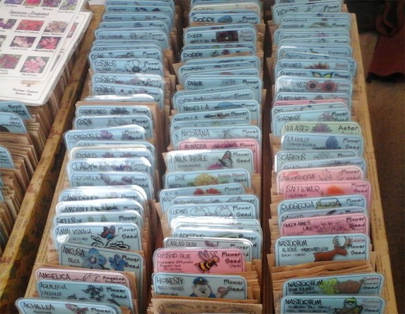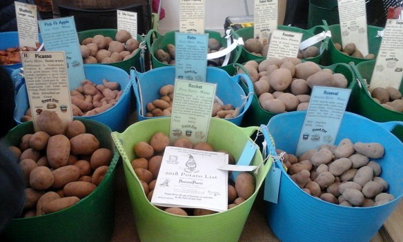 Finally the Sunday just gone we ventured to the great place that is Roots and Shoots (in association with Pennard Plants) in Kennington for their potato and seed shop day. Getting there just before the allotted time of 11am we treated ourselves to some bamberger long seed onions and “Rocket” seed potatoes which when chitted (the art of producing nice green buds, more on how to do that here) we’ll do that trick of cutting them in half so we’ll have twice as many plants. Also after taking ages going through the racks of seeds we purchased some great heritage and heirloom seed varieties (more on what heirloom seeds are here.)