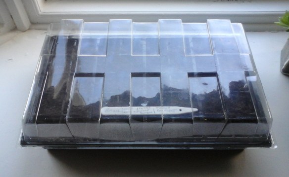Granted they’re not as sturdy as those green hard plastic ones with the plastic cover that has a circular air regulator on the top but we find the covers of those types of propagators get used outside in the garden as cloches and seed protectors and by the end of the season are lost or in a right state. An advantage with the one from Shannon’s is that the seed tray is a collection of “plug plant” type holes that’ll make transplanting the seedlings a whole lot easier (less of that pricking out business!)