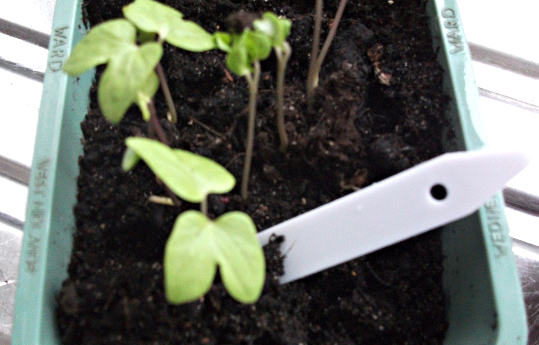 The Morning Glory seeds I sowed the other week, alongside the many others adorning the kitchen windowsill (above) are now on their way. I took the plastic bag off when the seeds started to germinate, made sure the compost never dried out and turned the seedlings when they were leaning towards the light. If the seedlings were left in the tray, they would quickly become overcrowded which would lead to poor growth. The first set of leaves that appear are the plant’s seed leaves which are usually different to the ones that will follow so don’t fret if you think you’ve got something else to what you sowed.