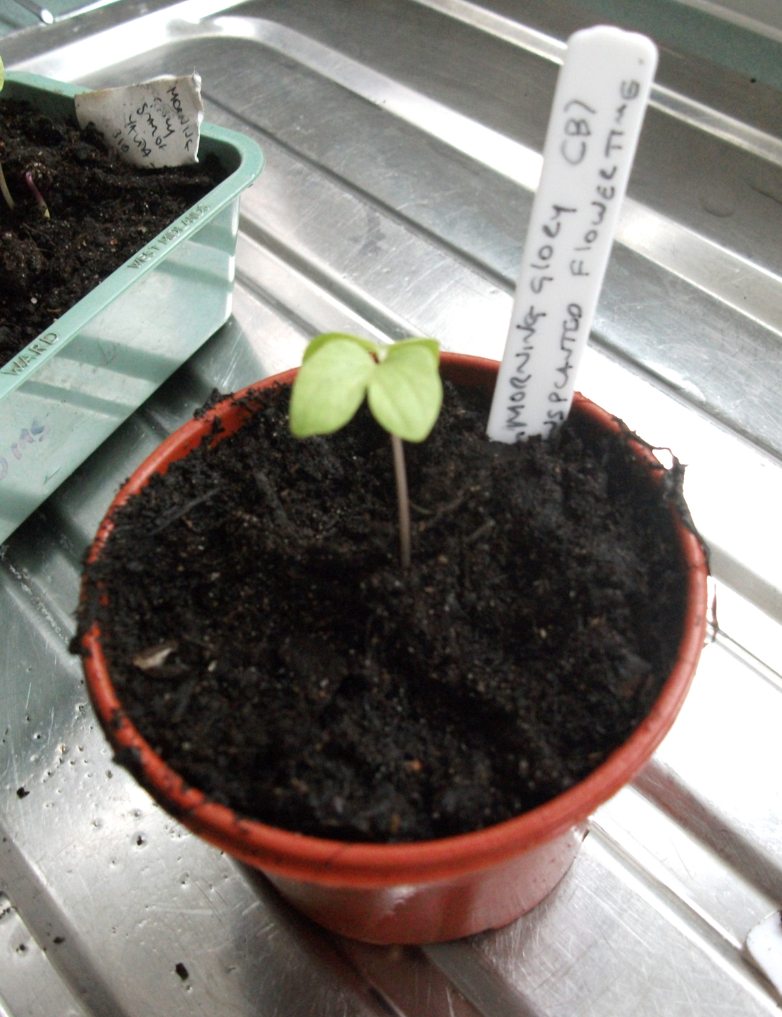 Using a dibber, old ball-point pen, teaspoon or in my case a seed label, separate the seedling from the tray, taking care to leave a ball of compost around the root (the lesser disturbance to the roots the better). Gently remove it, holding it by the leaves rather than the stem which is sensitive to bruising which will leave the seedling open to diseases. Transfer the seedling to the prepared pot and gently firm the compost around it making sure the level of compost to the stem is the same as where it was in the tray. Give the pot a wipe around the sides and put in a plant label with name and date (if you are anal like myself!)