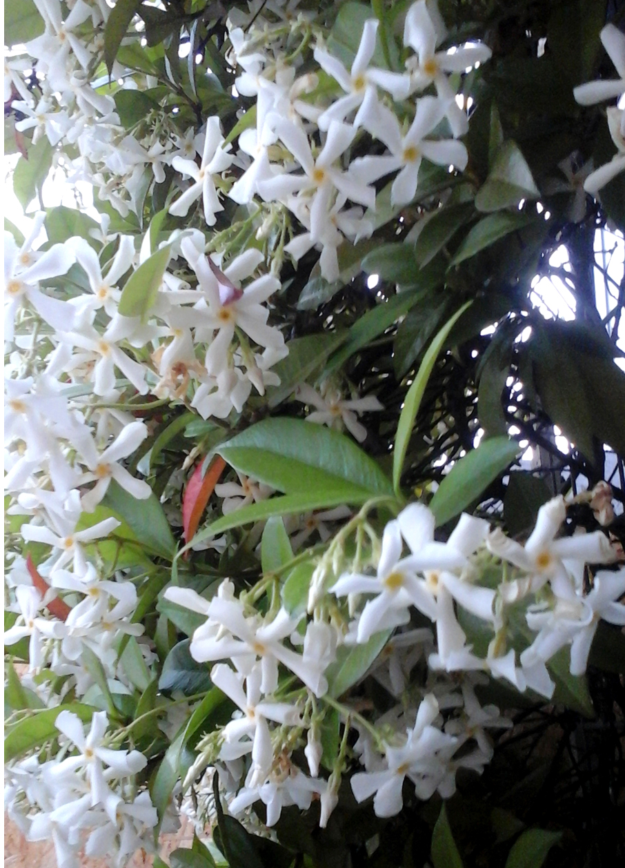 It’s only a few days after the summer solstice and boy the garden is growing well. It’s getting lots of sun and we’re trying to water it as regularly as we can so that’s a great combination.It’s funny how changes can revolutionise things, the Jasmine above (purchased from Shannon’s many years ago) never really did much. It slowly crept up the trellis on the back of the house and there wasn’t much of a scent when the flowers did bother to come out. Then the other month the Berlin wall type structure went up next door (post here), we thinned out the belfast sink it was in (there were others plants in it at the time) and since then kept it watered and fed with comfrey liquid and lo and behold look what’s happened (above). There’s a lovely fragrance from it in the evening too. TLC that all it needed!
