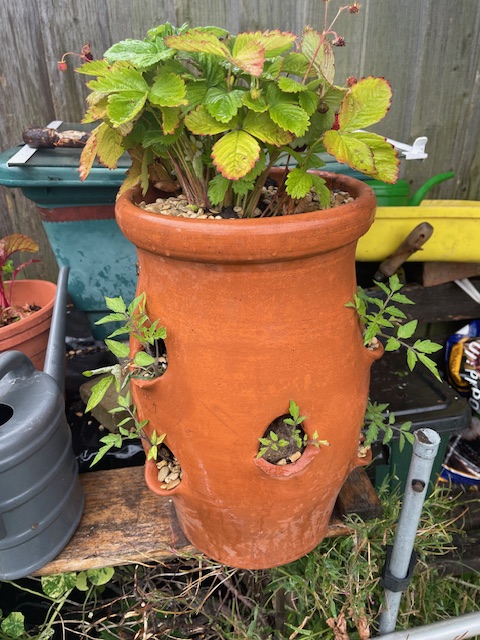 Oddly though we have a strawberry plant in a pot up near the house and been wondering why it hasn’t been doing anywhere as good as the others dotted around the garden especially with the current weather. We assume this could be the reason why (pic above).