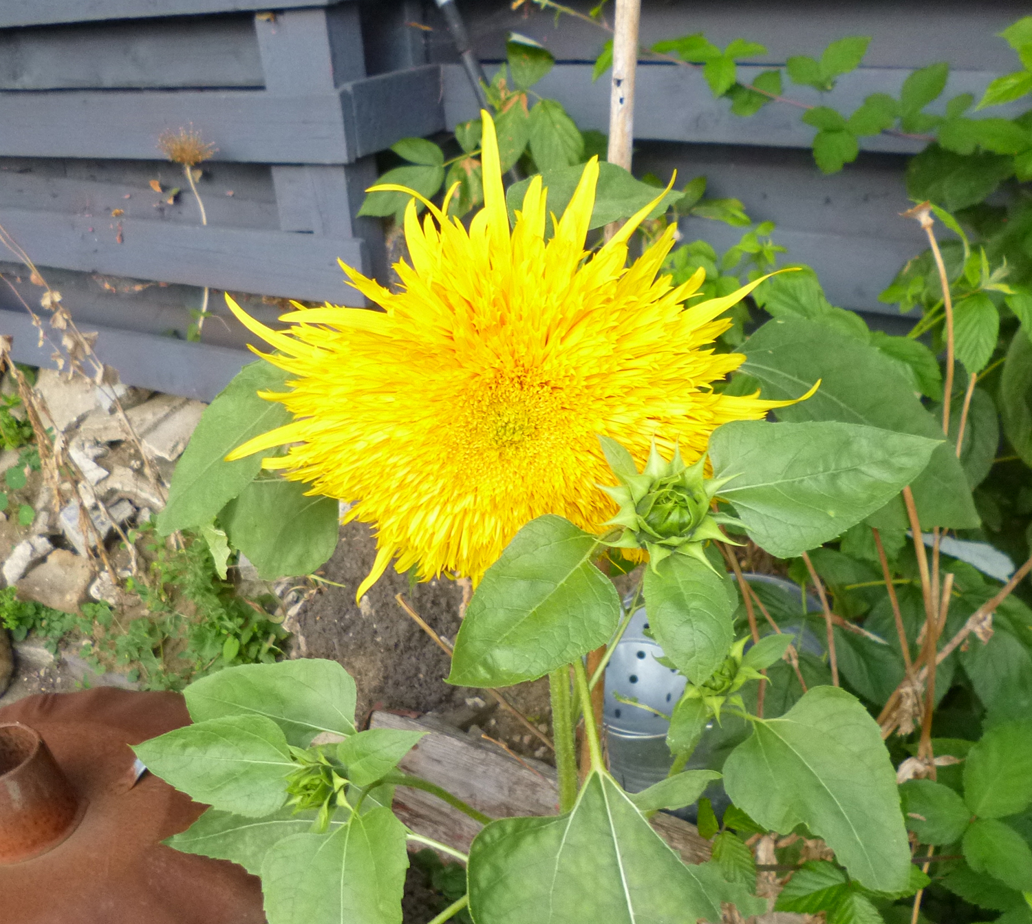 There’s been a right change of weather over the last few days. The sunflower (above) next to the garage has taken a tumble a few times because of the wind and is back up supported by some garden wire connected to various old nails in the wall. There’s been some damage to the main stalk so if we can get another couple of weeks out of it before the frost or parakeets get to it that’ll be something, finger crossed.