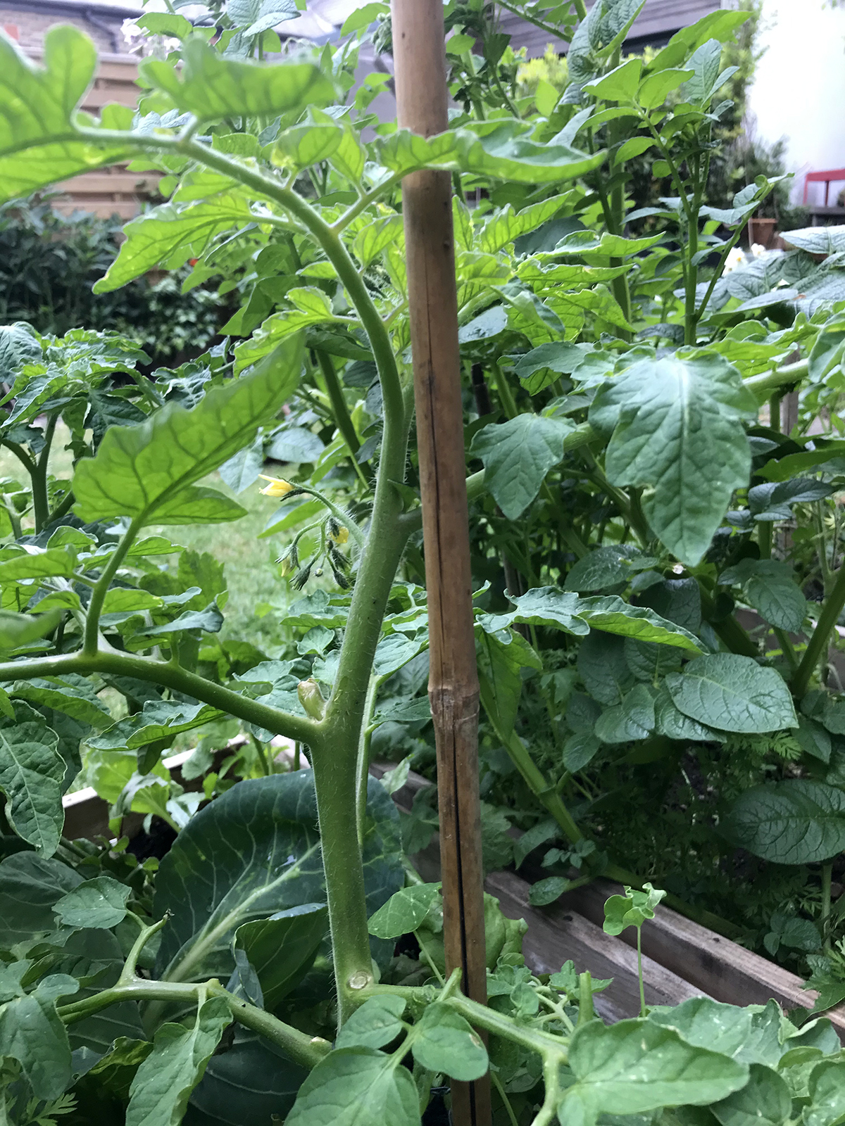Now we’re off the furlough we’re only spending the lunchhour and after work gardening and much of the big work was done when we were off. Once you get a good headstart on yourself, gardening gets a lot easier but it’s getting that start. We managed to keep the bed on the right hand side (below) a lot tidier than usual and even stuck in some tomatoes, cabbages and spuds amongst the flowers. The comfrey we use daily, pulling off massive handfuls to stick in the compost heap and for putting in holes before we transplant something. That keeps the comfrey under control as it can swamp everything if it gets its way!